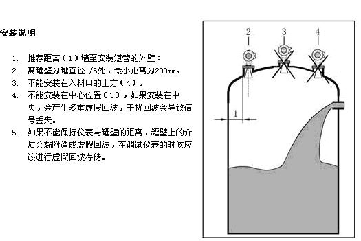 1雷達天線不可向罐壁傾斜。
